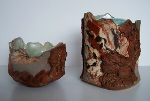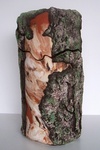 2008Doos V, grijze schors, ondergrond gerecyclede klei, binnenin licht blauwe glazuur