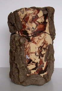 2008Grote Doos, Aardlaag "Women", schors, scheuren en kerven (hart), binnenkant nachtblauwe glazuur.